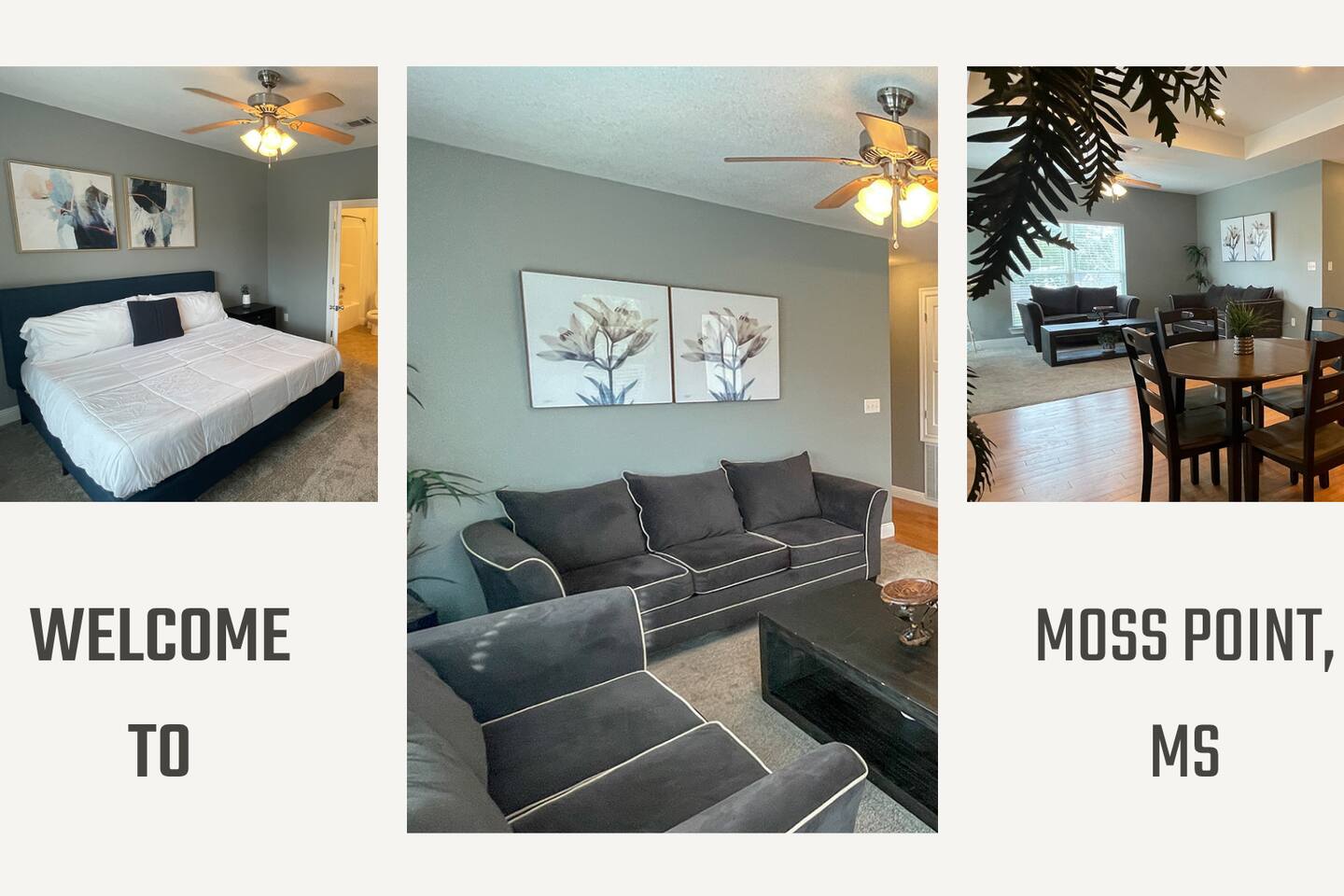 ★This apartment includes★ → 55" & 40" 4K Roku TV w/ Netflix & Youtube TV → Keyless Entry System → Fast Wi-Fi (500Mbps+) → Free onsite parking → Washer/Dryer In-Unit ★★ 3.7 miles to center city★★ ★★ 30 miles to Mississippi Coast Coliseum★★ ★★ .5 mile to Downtown Riverfront★★ ★★ 4.5 miles to Singing River Hospital★★ ★★ 7 mile to Chevron Oil Refinery, Ingalls Shipbuilding, Mississippi Power ★★ The apartment is newly updated. Comfortable furnishings and a large fenced-in backyard. ★Home includes★ → 3 King beds → 55” Ultra HD 4K TV in the living room and a 40" in each bedrooms → Fully equipped kitchen → Air Conditioning → Washer/Dryer → Cleaned by a professional team The kitchen is fully equipped with: → Pots → Pans → Dishes → Utensils → Salt+Pepper → Coffee → Tea → Creamer ★★CLEANLINESS★★ is a high priority for our apartments! There is always a thorough sanitizing/cleaning between guests.